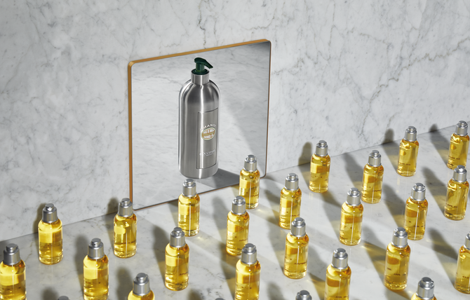 Rimbushja e brendshme kaq e lehtë përbëhet nga plastikë e ricikluar dhe e riciklueshme*. Elegante dhe e lëvizshme, ajo garanton ruajtjen e formulës ndërkohë që redukton mbetjet plastike.