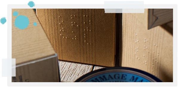 Ne filluam t`i shkruanim emrat e produkteve tona në Braille (në anglisht, gjuha më e kuptuar gjerësisht) në vitet 1990 dhe kemi vazhduar që atëherë! Kjo nuk është vetëm një mënyrë për t'i bërë produktet tona më të aksesueshme për njerëzit me shikim të dëmtuar; është gjithashtu një mënyrë për të rritur ndërgjegjësimin e njerëzve për humbjen e shikimit.