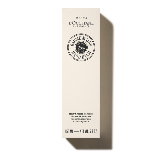 Formuluar me një përqendrim shumë të lartë prej 25% Shea Butter për të ofruar kujdes intensiv ushqyes, formon një shtresë mbrojtëse për lëkurën që është shumë e thatë ose e pakëndshme për shkak të agresorëve mjedisorë (i ftohti,ajri i kondicionuar). Me teksturën e tij shumë të pasur, ky balm shkrihet në duar dhe thonj që nga momenti kur aplikohet dhe masazhohet. I pasuruar me alantoinë, ndihmon në zbutjen e menjëhershme të lëkurës, duke sjellë rehati dhe butësi. I përdorur çdo ditë, ai ndihmon në mbrojtjen e duarve nga thatësia. Gjalpi Shea është një balsam natyral bukurie, i përdorur nga gratë në Afrikën Sub-Sahariane. Që nga vitet 1980, L'OCCITANE ka krijuar një partneritet të qëndrueshëm dhe të drejtë tregtar me gratë në Burkina Faso që e prodhojnë atë. Për të përjetësuar këtë histori me gratë e këtij vendi, Fondacioni L'OCCITANE përfshihet për sipërmarrjen e grave duke mbështetur programet e shkrim-leximit, trajnimit dhe mikrokredive, si dhe zhvillimin e kompanive të krijuara nga gratë.