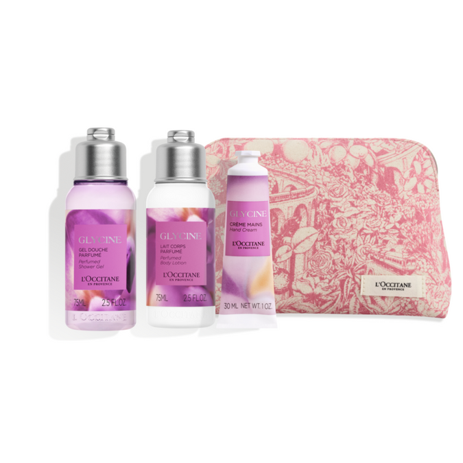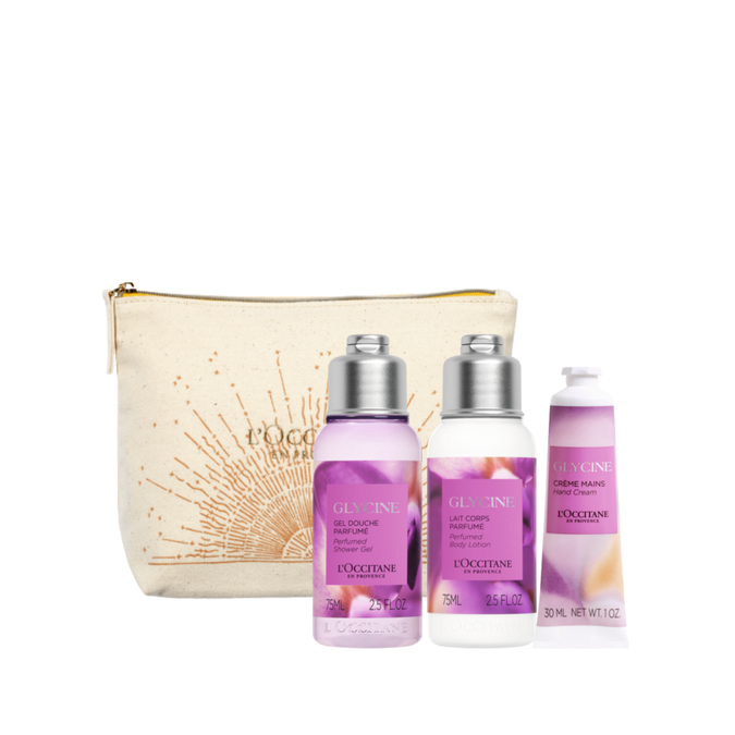 Hyni në një botë të magjepsjes së luleve me koleksionin tonë Glycine, një koleksion mahnitës i frymëzuar nga aroma unike dhe magjepsëse e lules Wisteria.