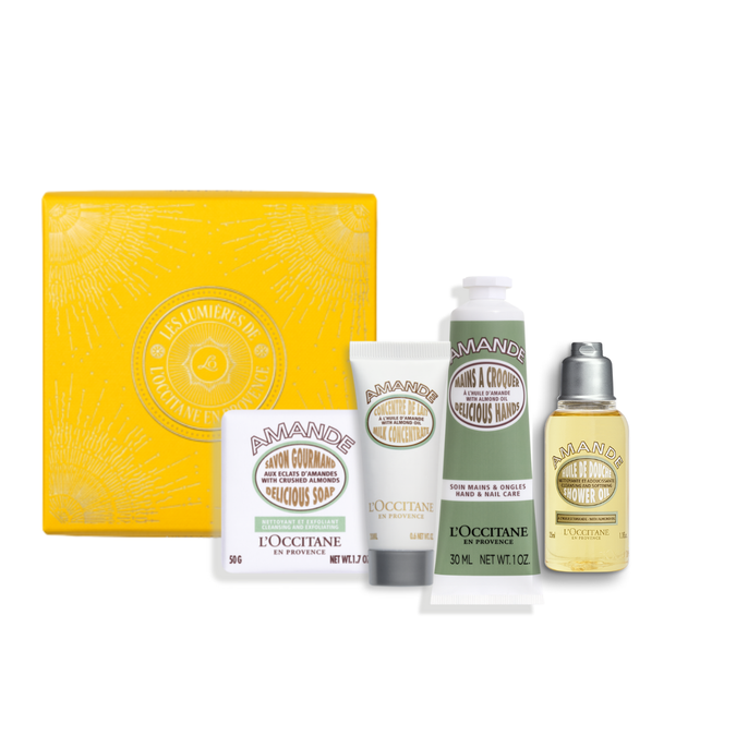 Shtoni momente kënaqësie në dhuratat tuaja me këtë koleksion të formulave të shijshme të bajameve, të dizajnuara për të ushqyer lëkurën dhe për të kënaqur shqisat.