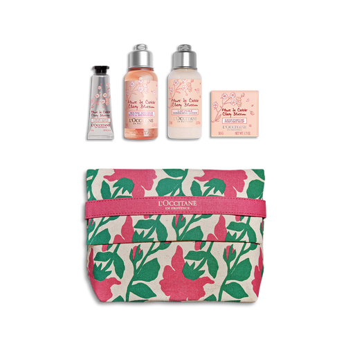 Brenda kësaj cante të bukur krijuar me pambuk të ricikluar, gjeni 4 produktet e preferuara të Qershisë: Sapun qershie aromatik 25gr, Xhel Dushi Larës nga Lulet e Qershisë 50ml, Qumësht Trupi Zbukurues nga Lulet e Qershisë 50ml dhe një Krem Duarsh nga Lulet e Qershisë 10ml.