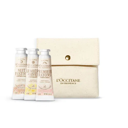 Tre kremra duarsh me edicionet festive në një çantë ikonike L'OCCITANE