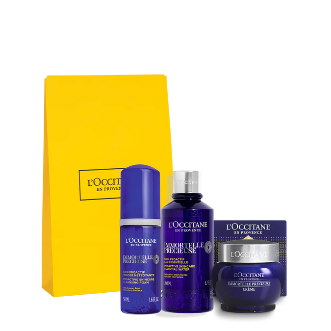 I fuqizuar nga vaji esencial i Bimës Immortelle, lules që nuk vyshket kurrë, ky koleksion nxitës i kolagjenit punon për të rigjeneruar dhe rinovuar lëkurën për një pamje dukshëm më të lëmuar dhe më të re.