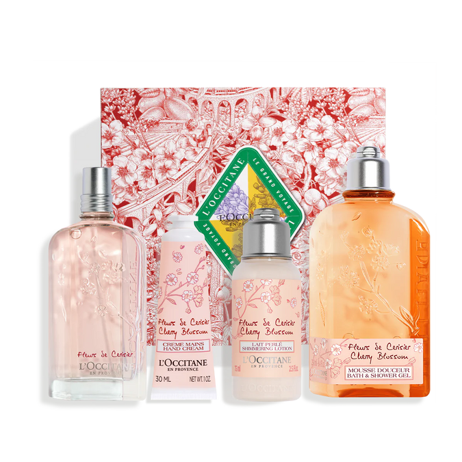 Produktet më të njohura Cherry Blossom së bashku në një set të bukur dhurate për më të dashurën tuaj.