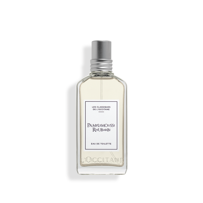 Vibrant dhe rrezatues, Eau de Toilette « Pamplemousse Rhubarbe » lindi nga një takim mes dy përbërësve me një efekt të këndshëm. Një aromë elegante dhe e përjetshme agrumesh, unisex. Nota të freskëta, pikante dhe nota të buta prej druri janë bashkuar për ta risjell edhe njëherë këtë fragrancë si pjesë të koleksionit ''Les Classiques de L’Occitane"