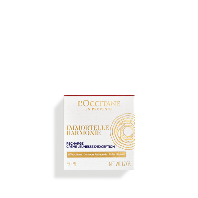 Ky rimbushës është krijuar për t'u përshtatur në mënyrë të përkryer në vazon tuaj ekzistuese të kremit Divine Harmonie. Për herë të parë, L'OCCITANE ka kombinuar fuqinë e tokës dhe detit të Korsikës në zemër të një kremi me një sensorialitet krejt ndryshe. Immortelle Millésimée, lulja që nuk vyshket kurrë, shkrihet me Jania Rubens - algat e kuqe me aftësinë për t'u rigjeneruar përjetësisht. L'OCCITANE ka përdorur fuqitë e jashtëzakonshme rigjeneruese të dy ekstrakteve të tij të çmuara dhe i ka integruar ato në një ritual rinor që ofron veprim të dedikuar për të luftuar efektet e dukshme të kohës si në lëkurë ashtu edhe në harmoninë e fytyrës. - Lëkura juaj duket e ndritshme dhe e gjallëruar. - Shfaqja e rrudhave është reduktuar dukshëm. - Me shkëlqim dhe e qetë, fytyra juaj zbulon një harmoni të re. - Ekstrakti Millesimée është një vaj esencial i cilësisë së lartë me një përqendrim unik. - Vaji esencial organik Immortelle Millésimée kur kombinohet me Harmonie Divine Serum, 92% e konsumatorëve zbulojnë* tekstura e lëkurës ndihet e rafinuar. * Bazuar në testin e konsumatorit në 64 gra pas 2 muajsh të përdorimit të Harmonie Divine Serum + Krem.