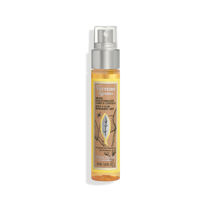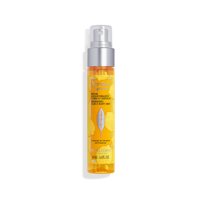 E pasuruar me ekstrakte të agrumeve dhe verbenës nga Provanca, ky mist perfekt për ta marrë kudo me vete, ofron një moment të menjëhershëm freskie ndërkohë që i lë lëkurën dhe flokët delikatisht të parfumosur me një aromë të këndshme dhe gjallëruese.